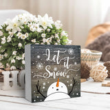 Let It Snow Christmas Wooden Sign Desk Decor, Snowman Christmas Decor, Rustic Winter Snowflake Wood Block Signs