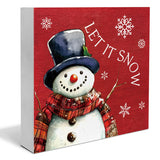 Rustic Christmas Decorations, Let It Snow Wooden Sign Decor, Snowman Wooden Block Sign, Christmas Decor for Table Shelf 5 x 5 Inch