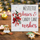 Rustic Christmas Decorations, Candy Cane Wooden Sign Home Decor, Mistletoe Wooden Block Sign, Christmas Decor for Table Shelf 5 x 5 Inch