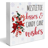 Rustic Christmas Decorations, Candy Cane Wooden Sign Home Decor, Mistletoe Wooden Block Sign