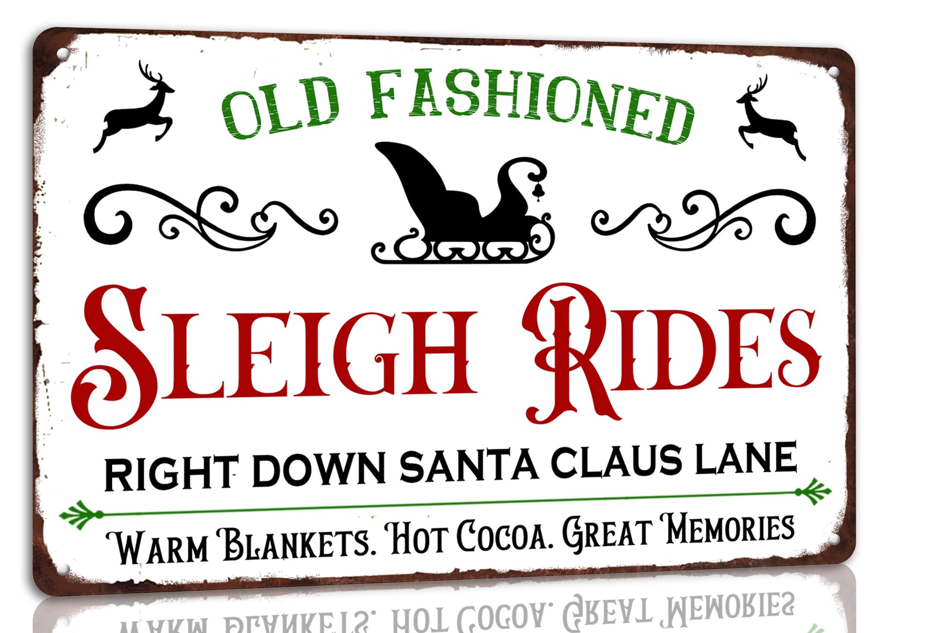 Product Content: You will receive one piece of Christmas vintage metal tin sign, with delicate design and pre-drilled holes for easy hanging. And for safe handling, the edges of each tin metal wall decor label are rolled and crimped