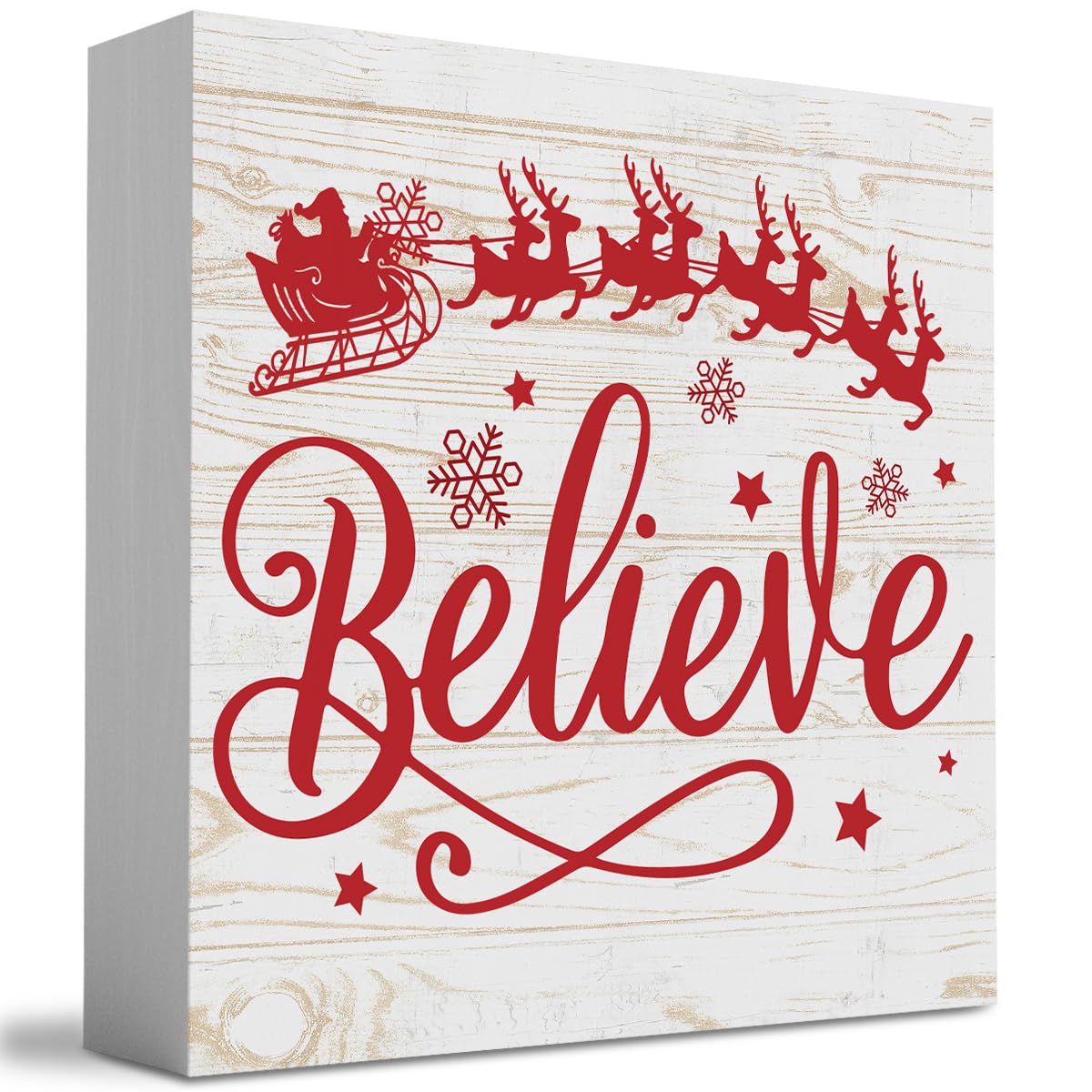 Merry Christmas with Reindeer Believe in Tree Wood Box Sign, Farmhouse Christmas Santa Artwork Decor