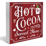 Vintage Christmas Decor, Hot Cocoa Wooden Sign, Coffee Bar Wooden Block Sign, Christmas Kitchen Decorations for Table Shelf 5 x 5 Inch