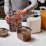 360-degree crystal-clear Tritan plastic, these airtight food storage containers are perfect for keeping flour, sugar, pasta, and other dry food fresh. The shatter-resistant pantry container set comes with leakproof lids that help prevent kitchen messes. Stackable and space efficient, they blend seamlessly and are beautiful enough to display on the kitchen counter for quick access. This collection of food storage containers come with three 16-cup containers, plus three convenient 1/2-cup scoops. They're all BPA-free and easy to clean—simply pop the base and lid into the dishwasher before you refill with more pantry staples.