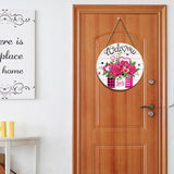 Welcome Valentine's Day Rose Flower Door Sign For Front Door Decor,Mason Jar Pink Love Heart Wooden Sign 8"x 8" Round Wood Hanging Door Sign