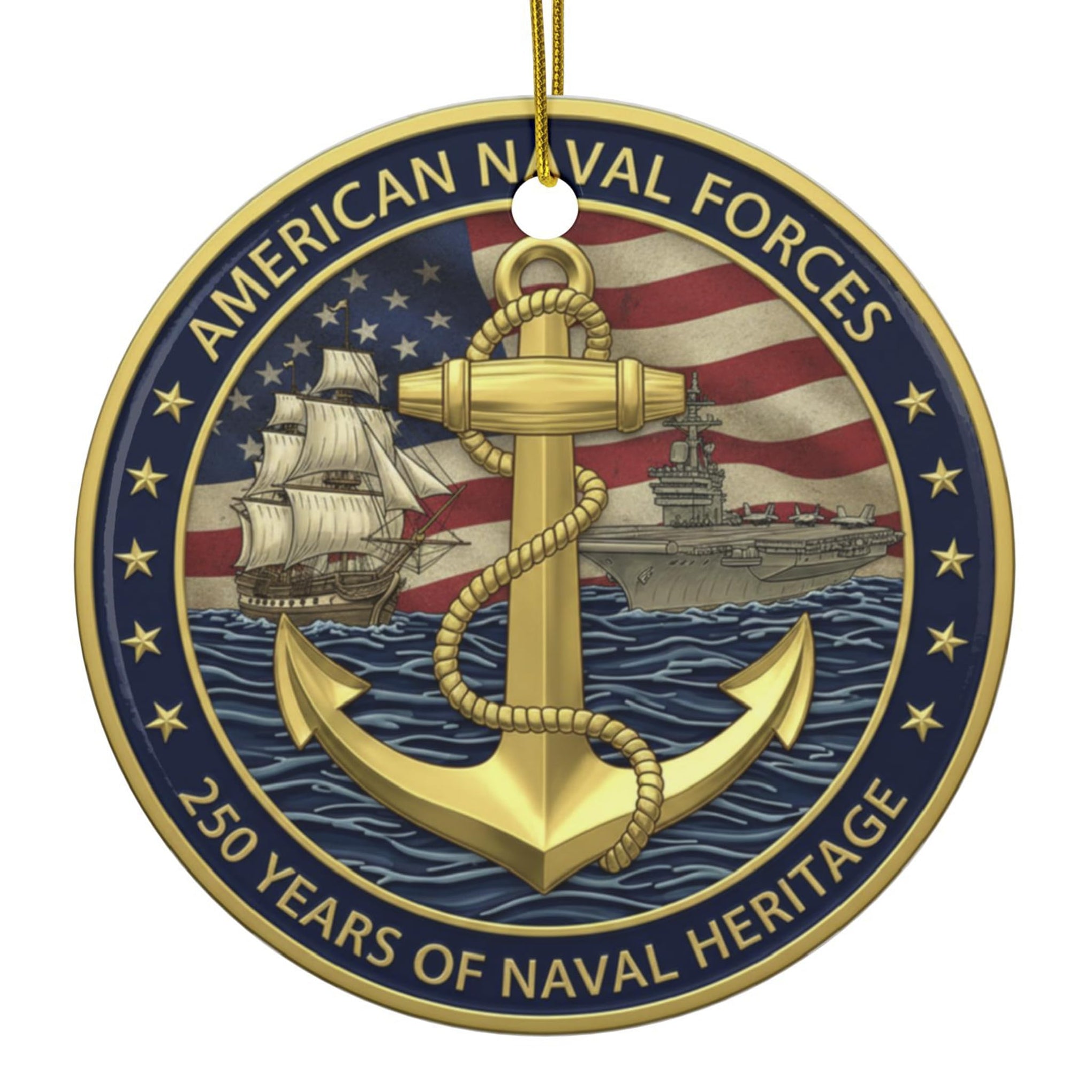 Ornament 250th Anniversary 1775–2025 – Double-Sided Ceramic Christmas Ornament with Anchor & Sailor’s Creed – Patriotic Military Veteran Keepsake Gift for Sailors, Families & Collectors