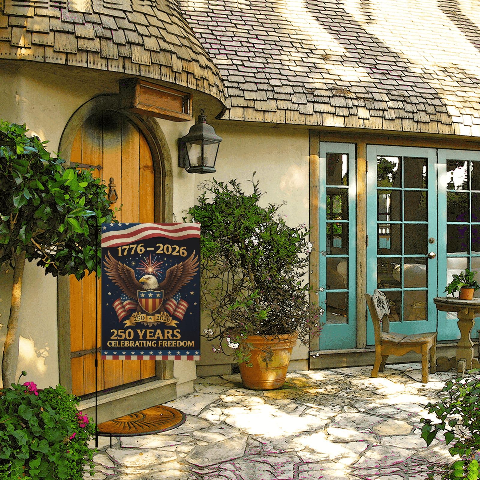 250th Anniversary American Flag 1776–2026 – “250 Years of Freedom” Patriotic Garden Flag with Bald Eagle & Stars | Single-Sided Outdoor Yard Decoration for Independence Day, July 4th, America 250 Flag