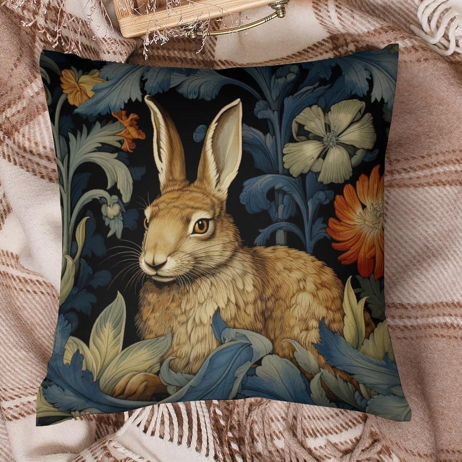 2Pack William Morris Rabbit Throw Pillow Covers Floral Art Nouveau Home Decor Chinoiserie Pillowcase 18x18 Inch 1-Sided Print