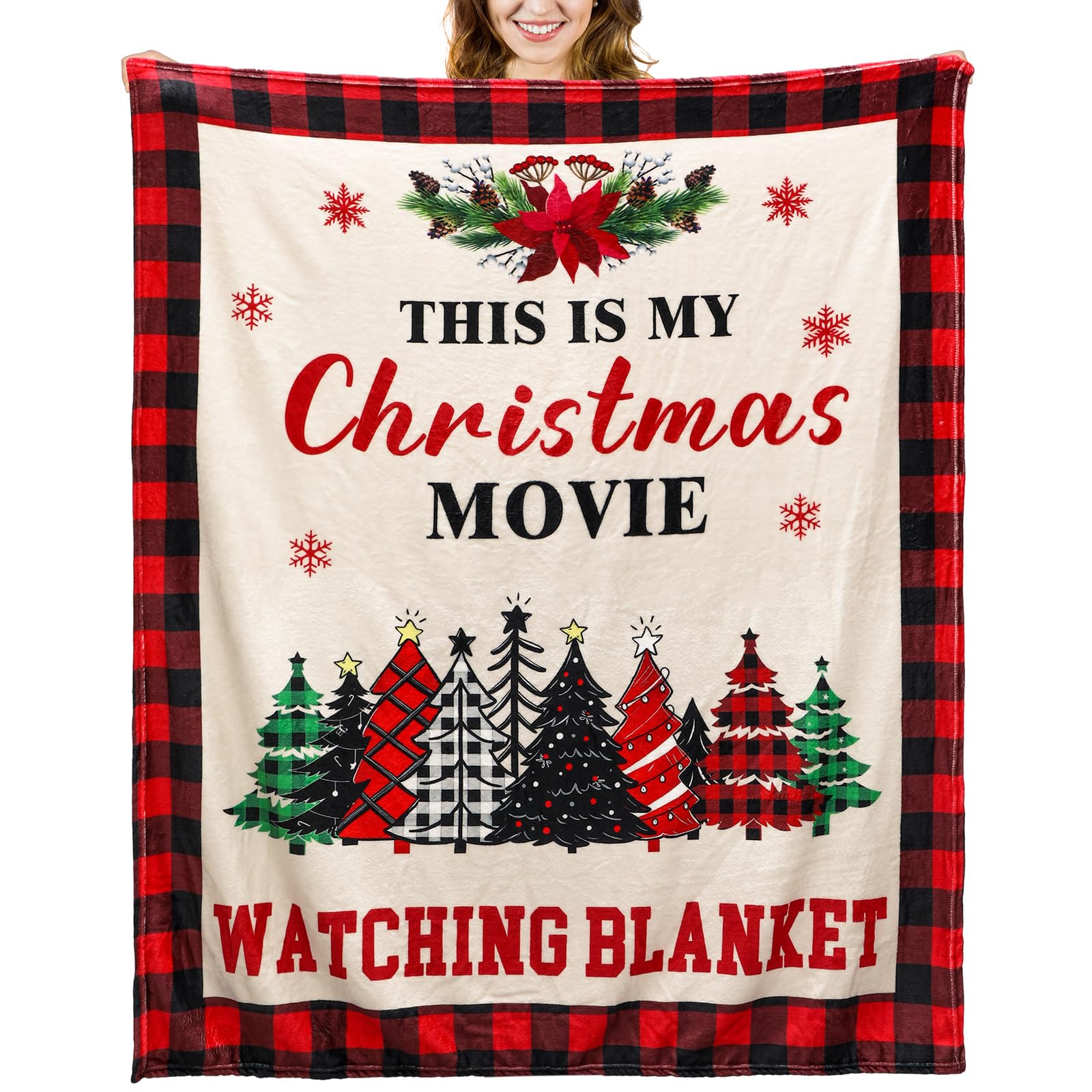 50'' x 60'' Christmas Throw Blanket This is My Christmas Movie Watching Blanket Plush Warm Black Red Movie Lover Gifts