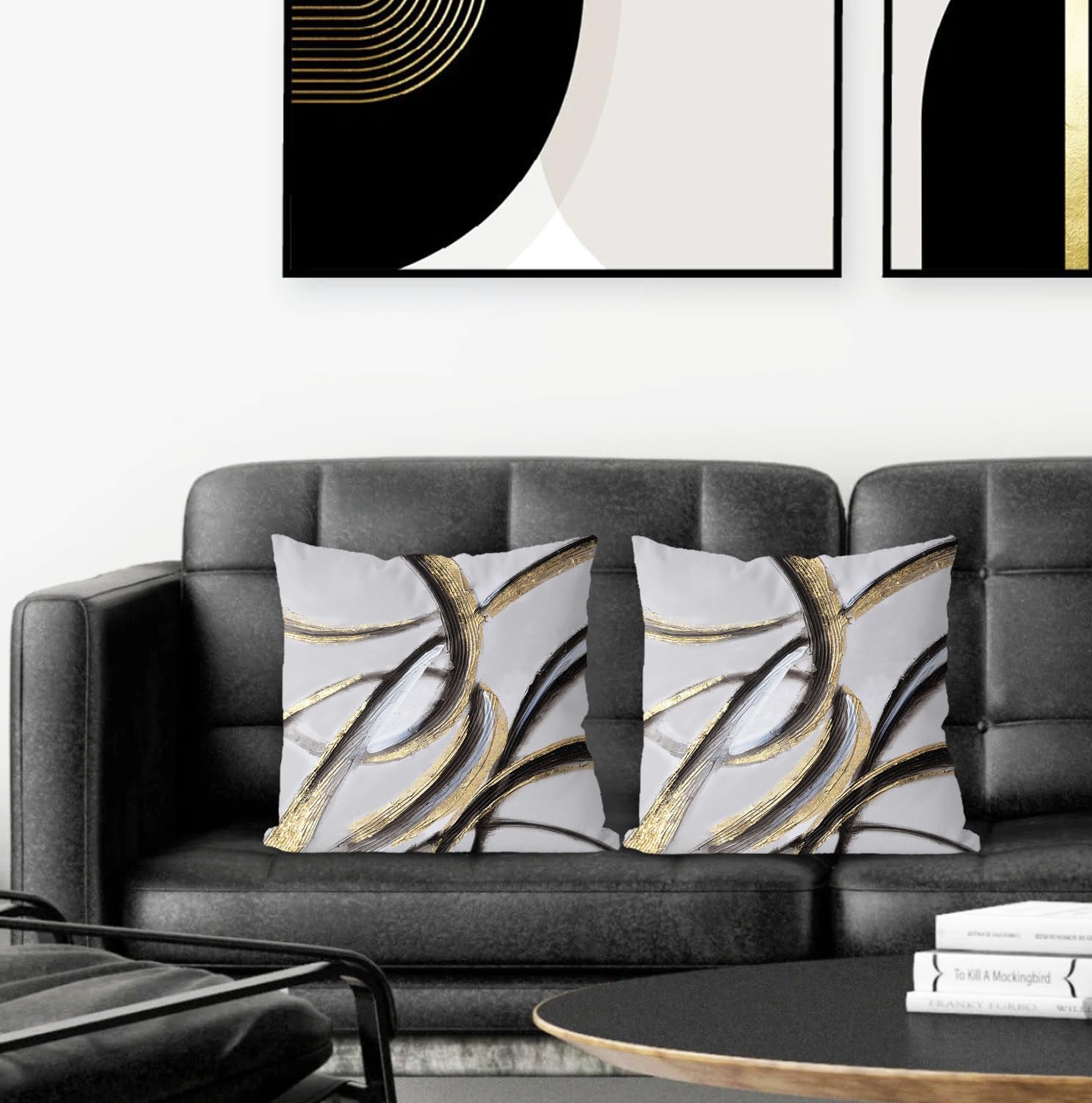 Black Gold Pillow Covers, Abstract Black and Gold Pillow Covers 18x18 Set of 2, Modern Boho Home Decor, Black and Gold Pillows Decorative Throw Pillows for Couch Living Room Bedroom