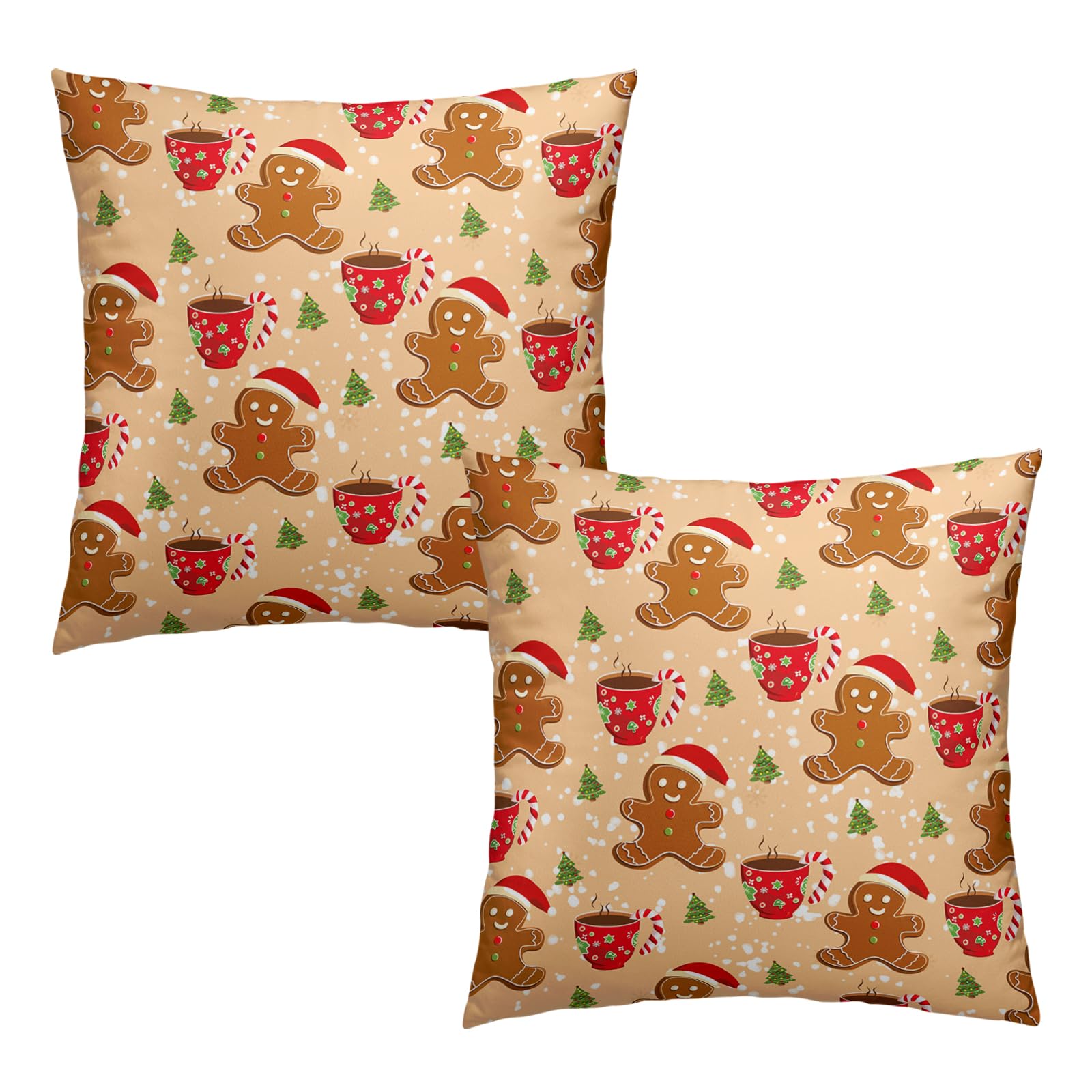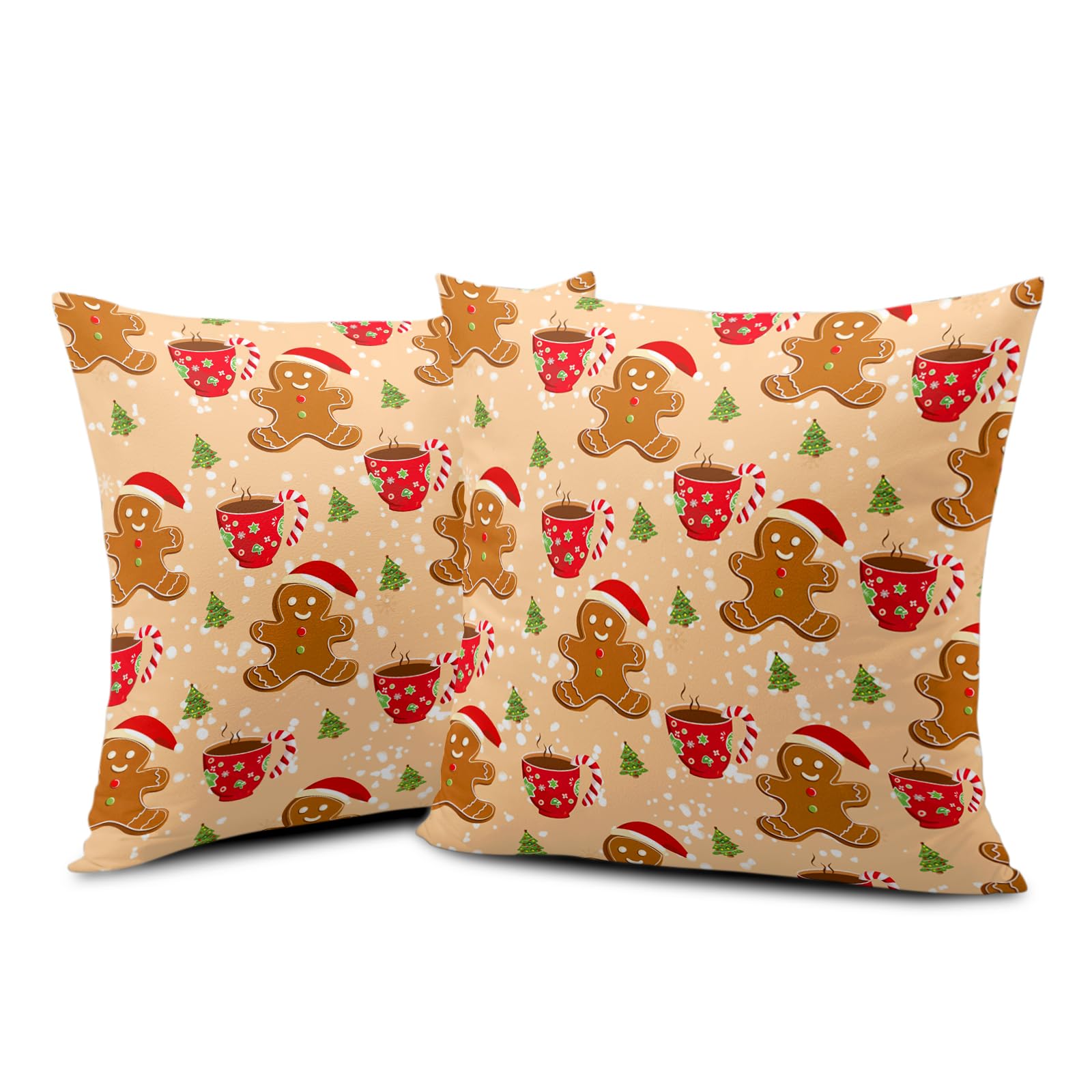Christmas Gingerbread Man Decorative Throw Pillow Covers 18x18 Set of 2 Cute Candy Cane Hot Cocoa Xmas Tree Print