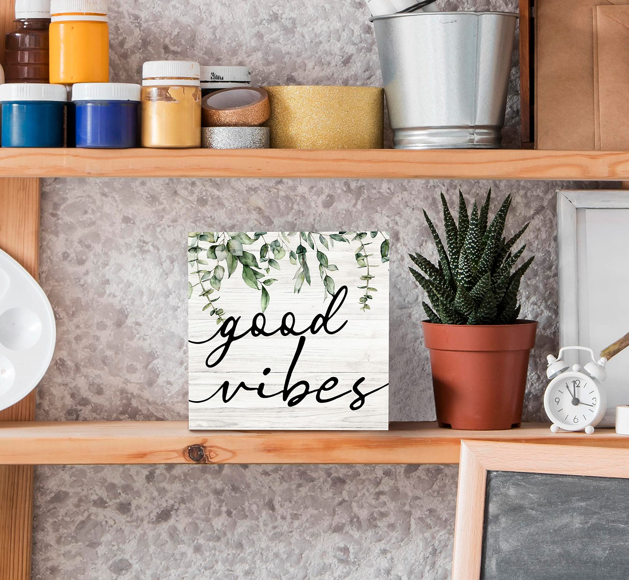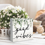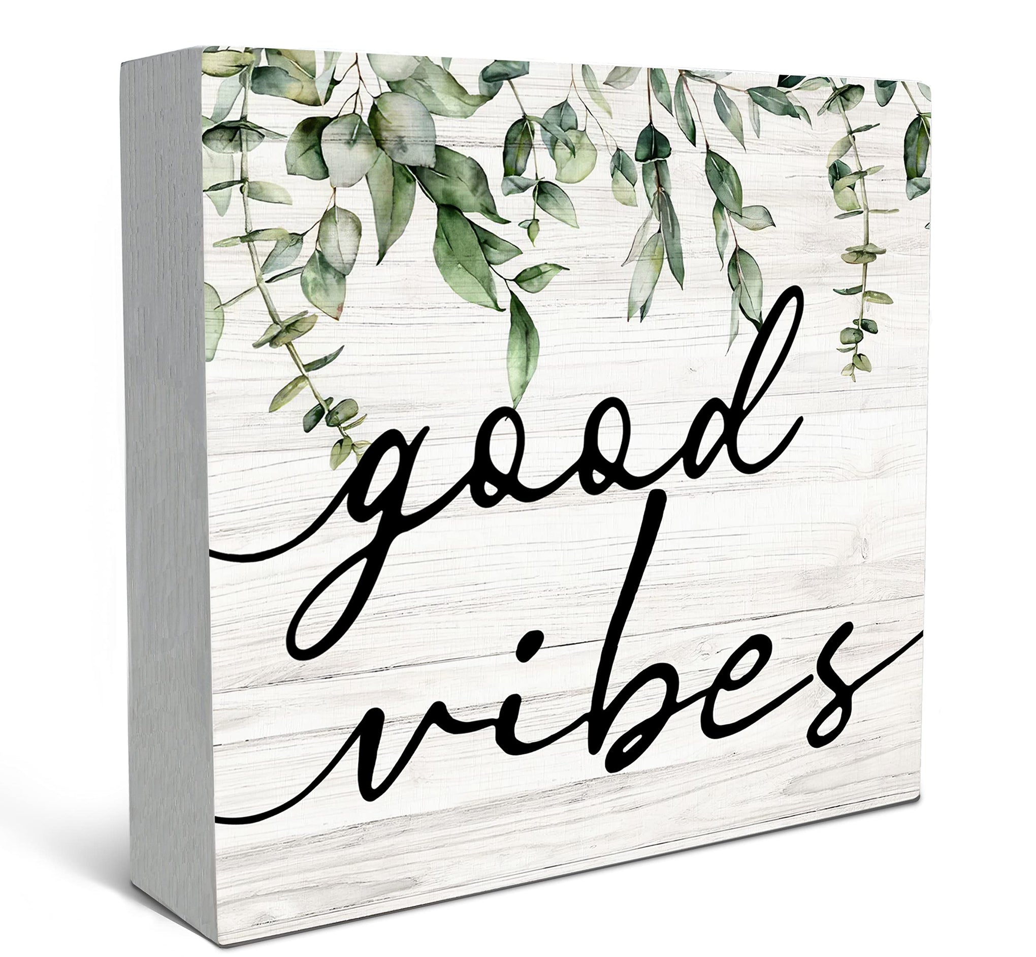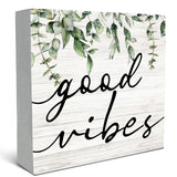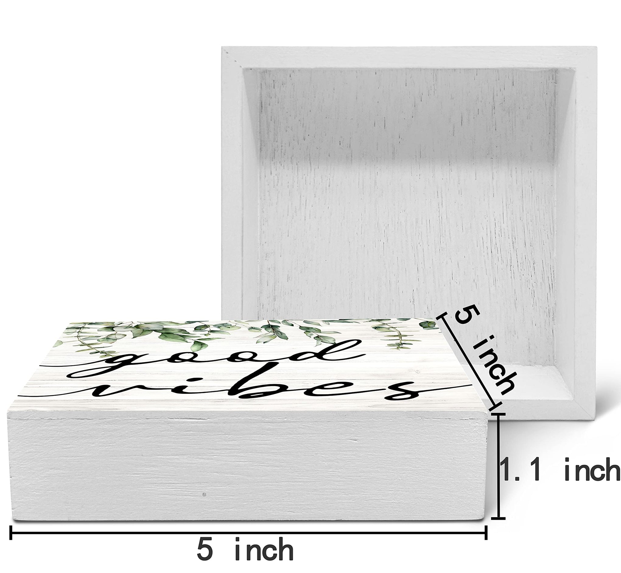 Botanical Eucalyptus Leaves Wood Box Sign Desk Decor, Rustic Eucalyptus Leaves Wooden Block Box Sign Decoration For Home Office Shelf Table Decor