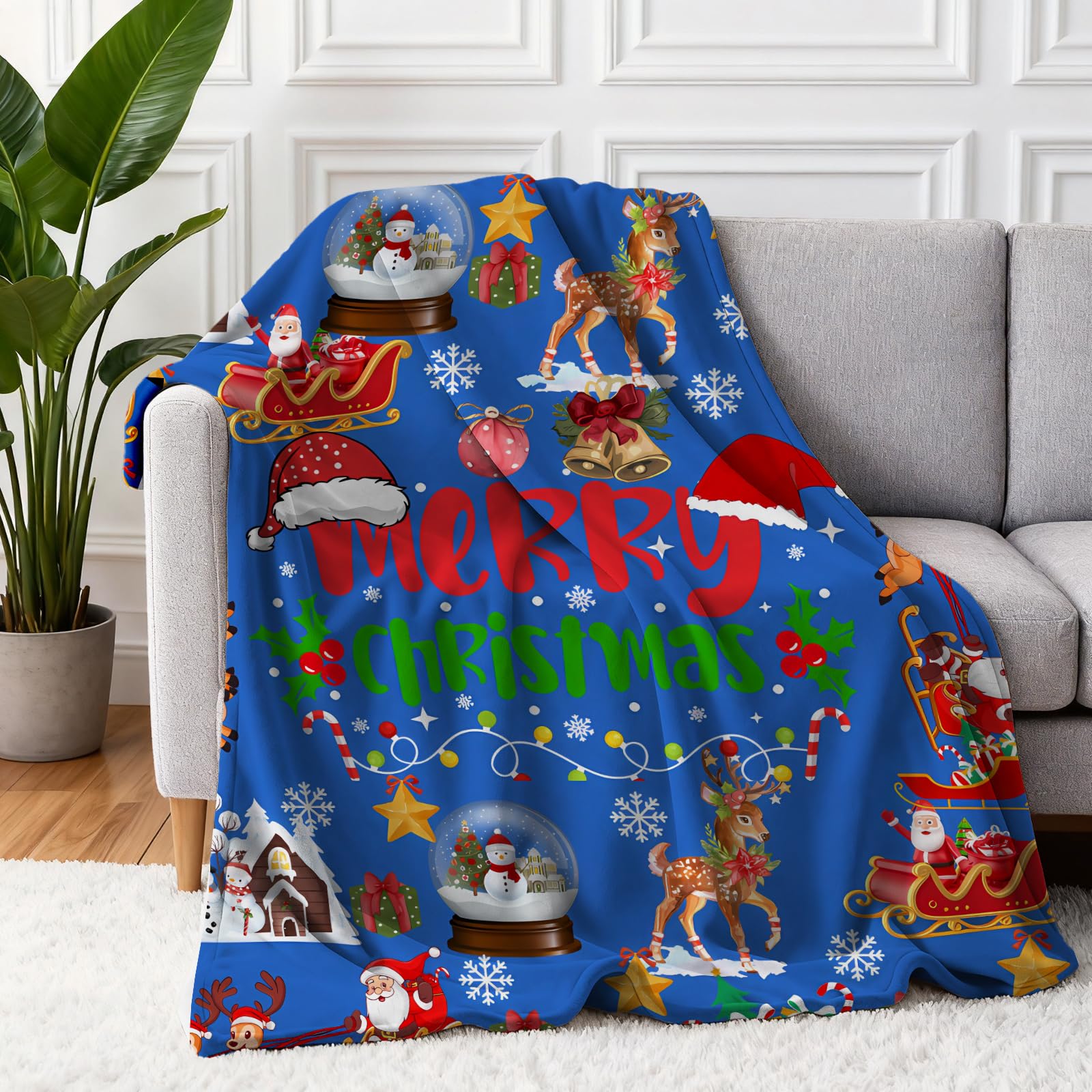 Blue Cute Christmas Blankets and Throws for Adults/Women/Boys/Kids, Holiday Fleece Throw Blanket