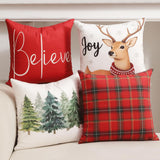 Christmas Decorations, Single Sided Red Plaid Throw Pillow Covers 18x18 Inches Set of 4, Christmas Tree, Snowflakes