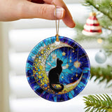 Black Cat Ornament – Christmas Decoration & Christmas Ornament; Round Ceramic