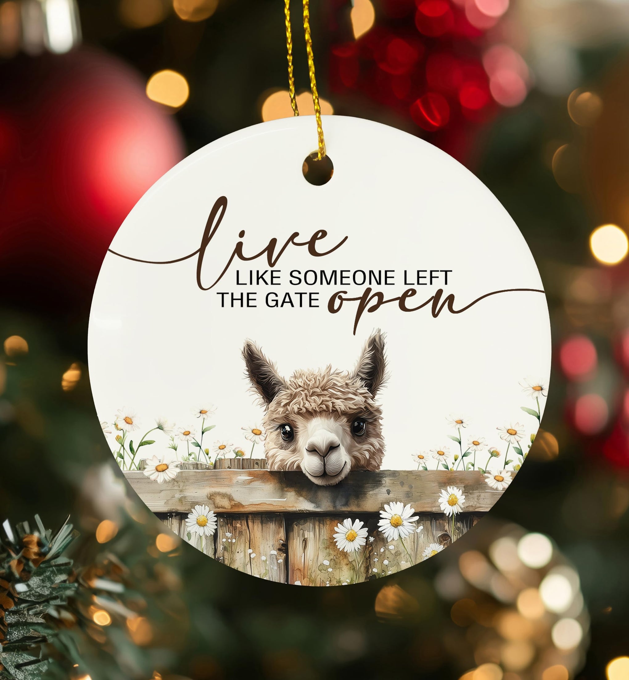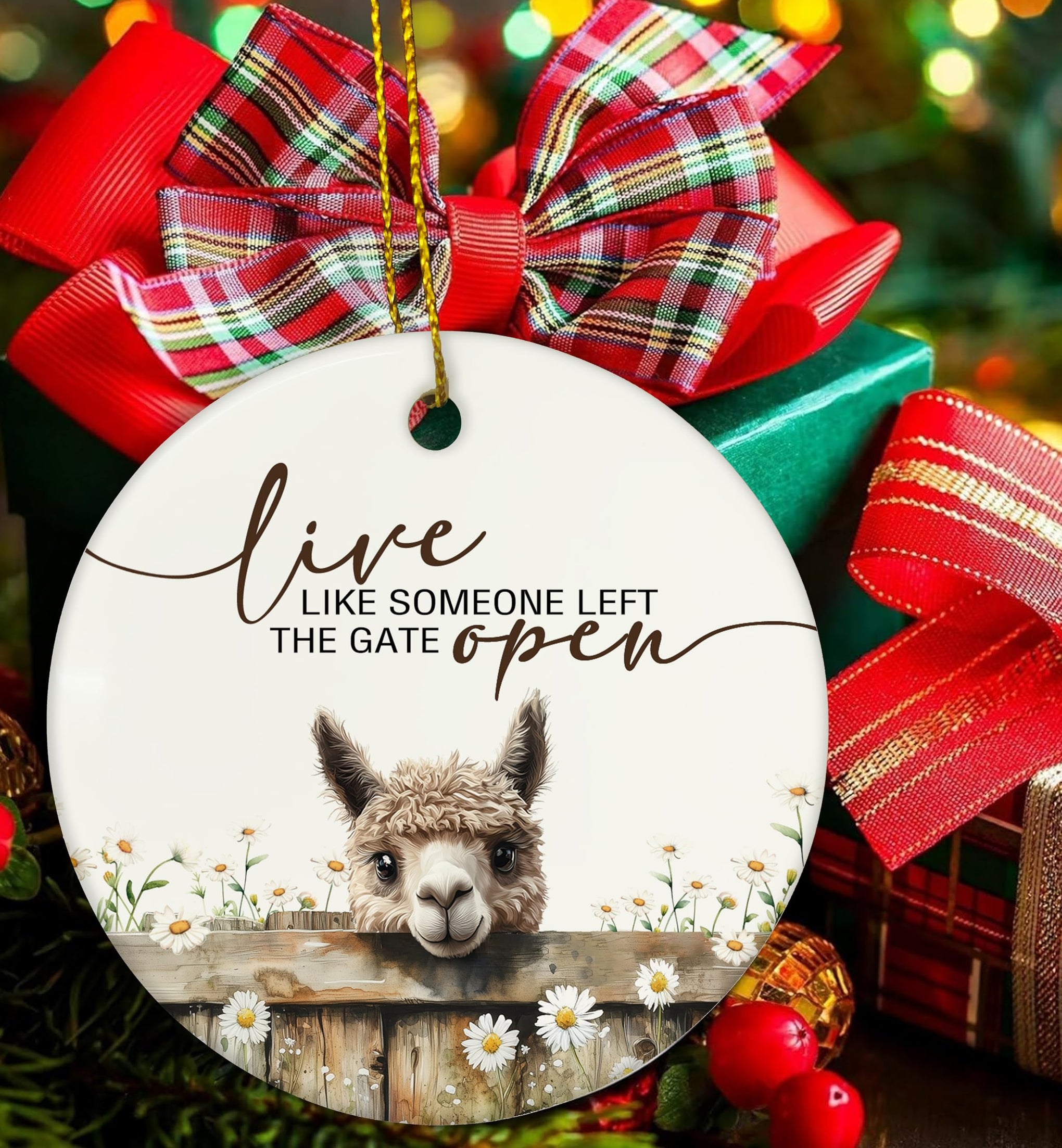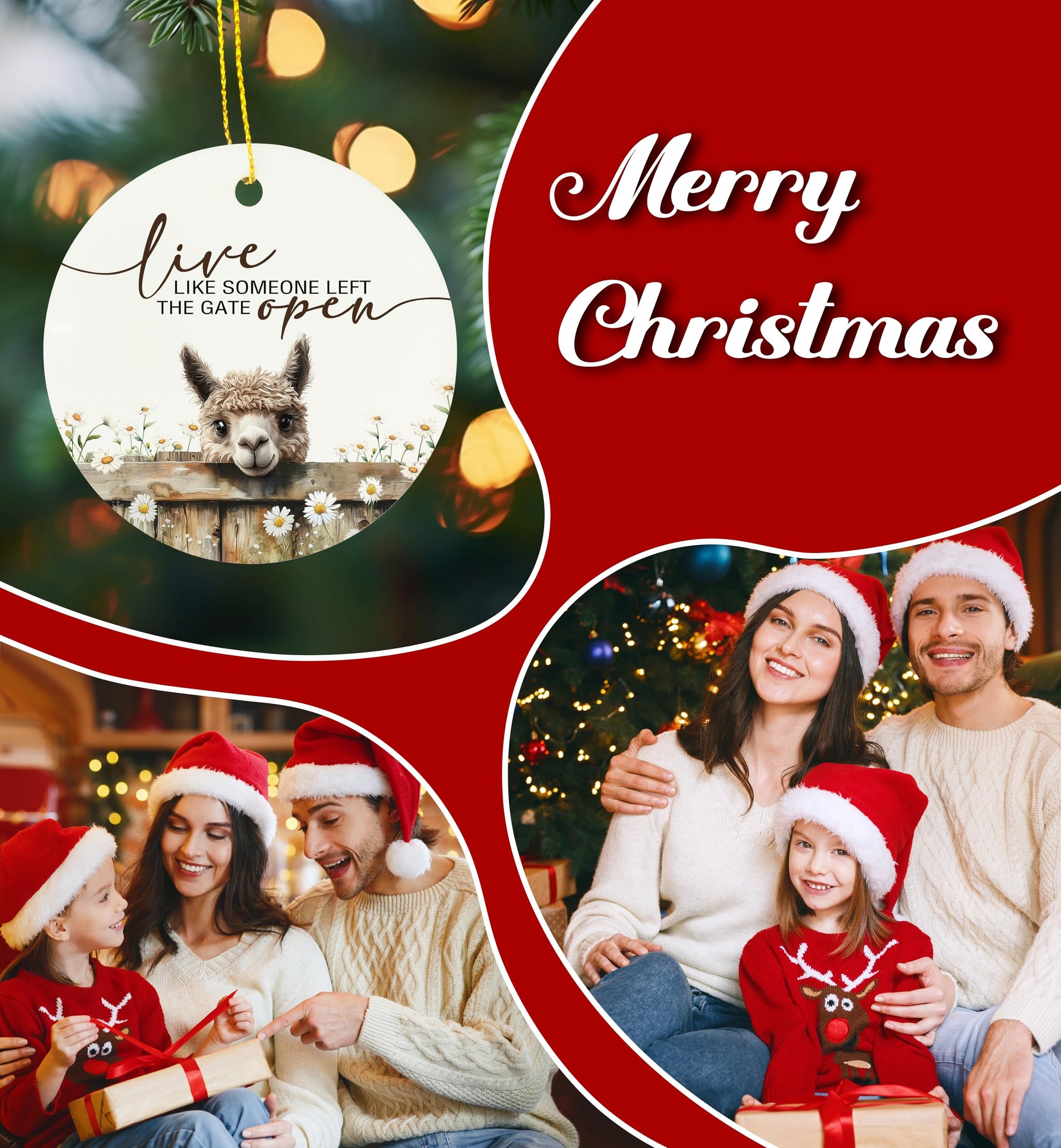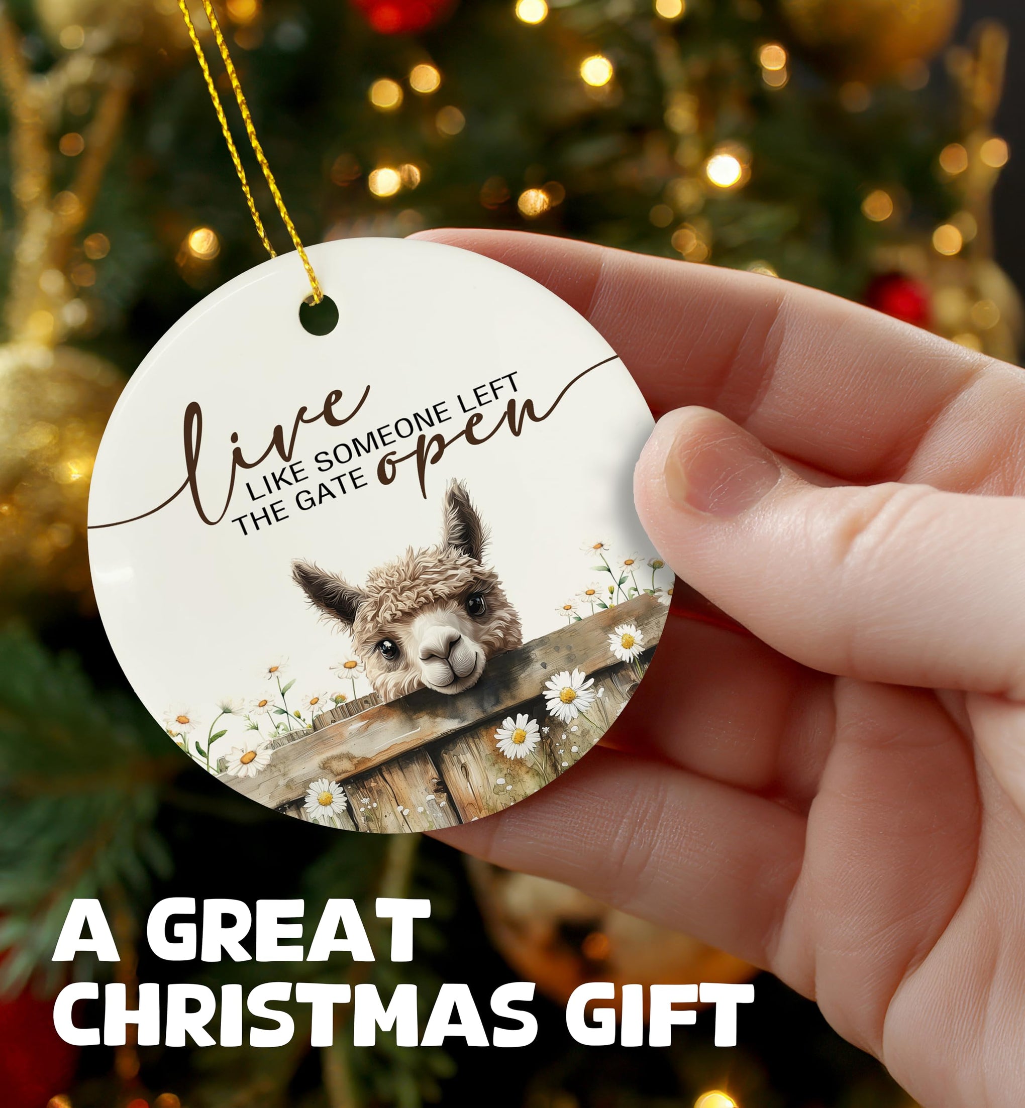 Alpaca Ornaments, Rustic Farmhouse Alpaca Hanging Ornaments for Christmas Tree Party Holiday Decorations, Live Like Someone Left The Gate Open Wildflower Ceramic Ornament Decor