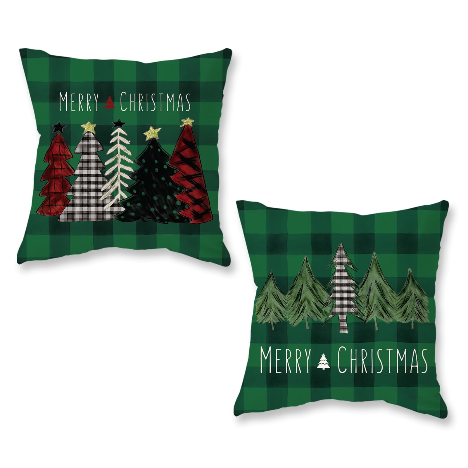 Christmas Pillow Covers 18x18 Inch Set of 2 Trees Red Black Green Decorative
