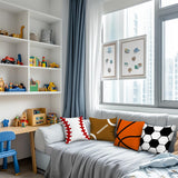 4PCS Secret Santa Gifts Sports Balls Pillow Covers Rugby, Basketball, Baseball, Soccer Throw Pillow Covers 18x18 Pillowcases