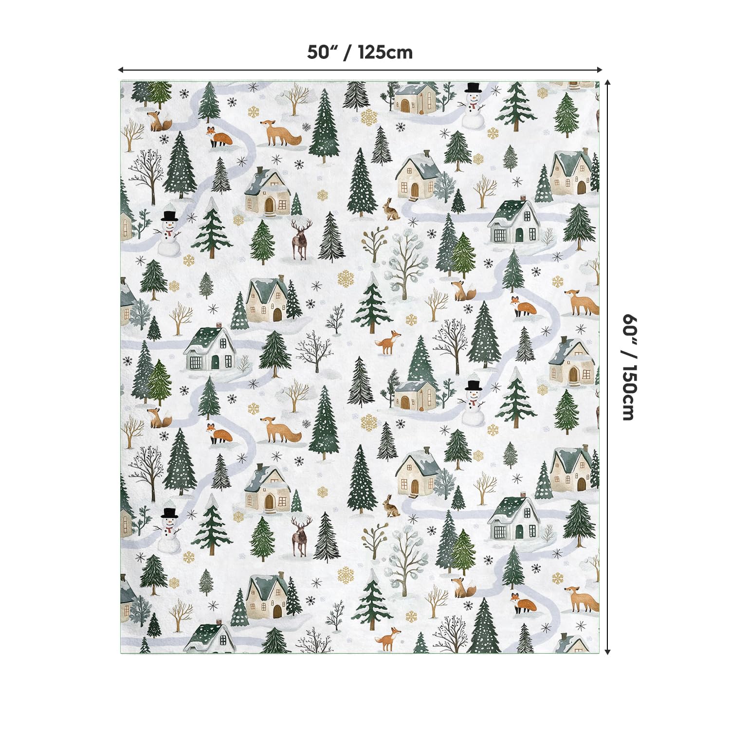 Christmas Flannel Blanket Throw, Christmas Trees Animals Snow House Soft Fuzzy Plush Cozy Fleece Blankets