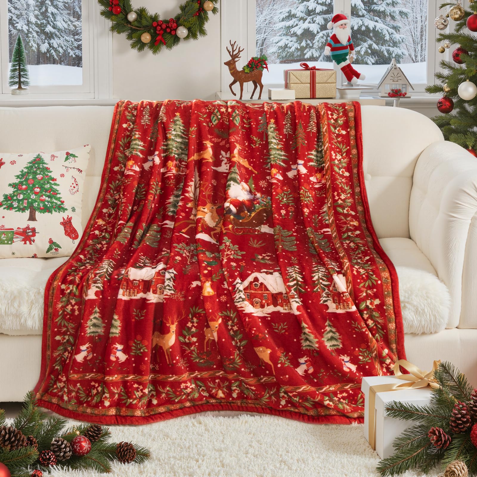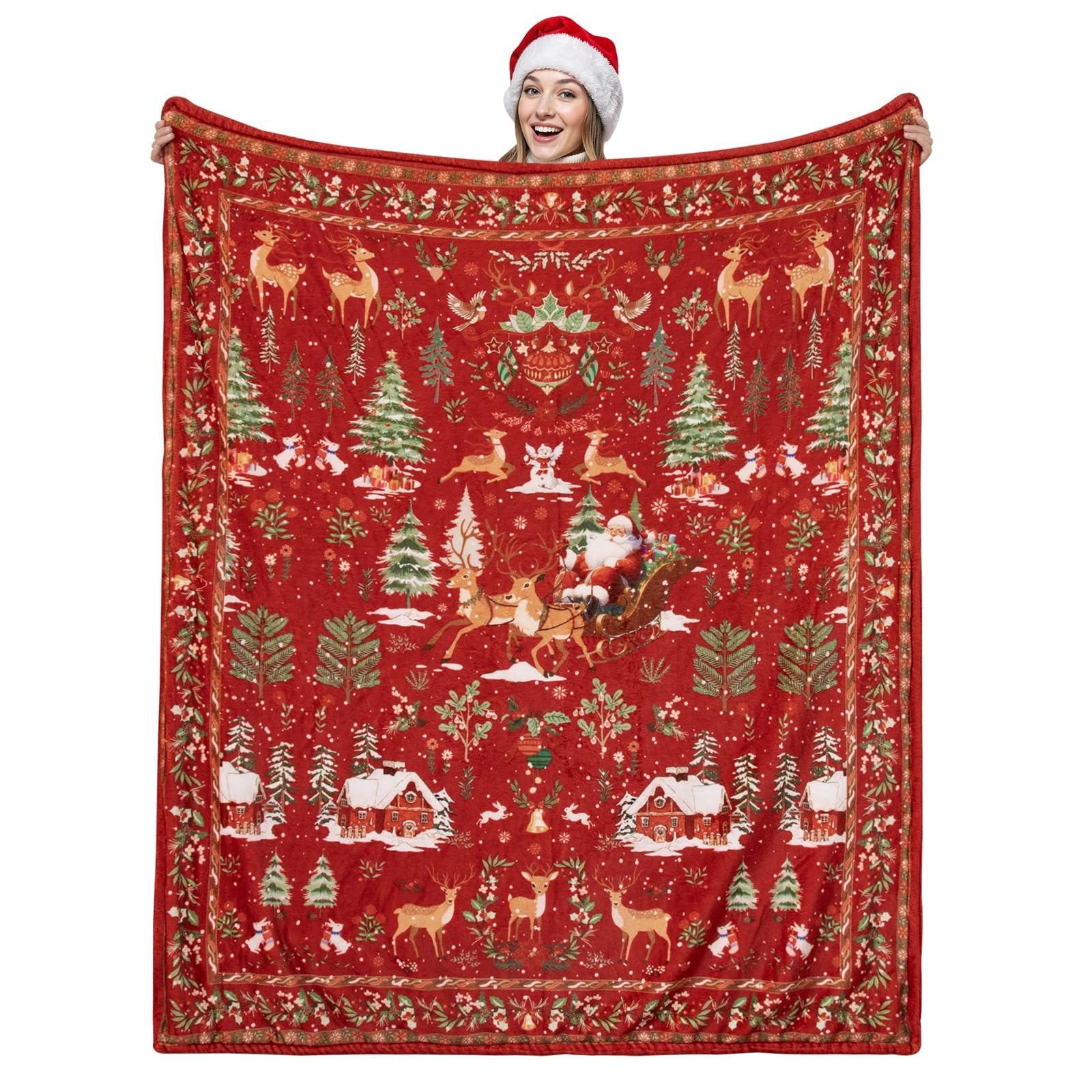 Christmas Blanket 50x60 Reversible Fluffy Fleece Holiday Blanket Xmas Deer Throw Blanket