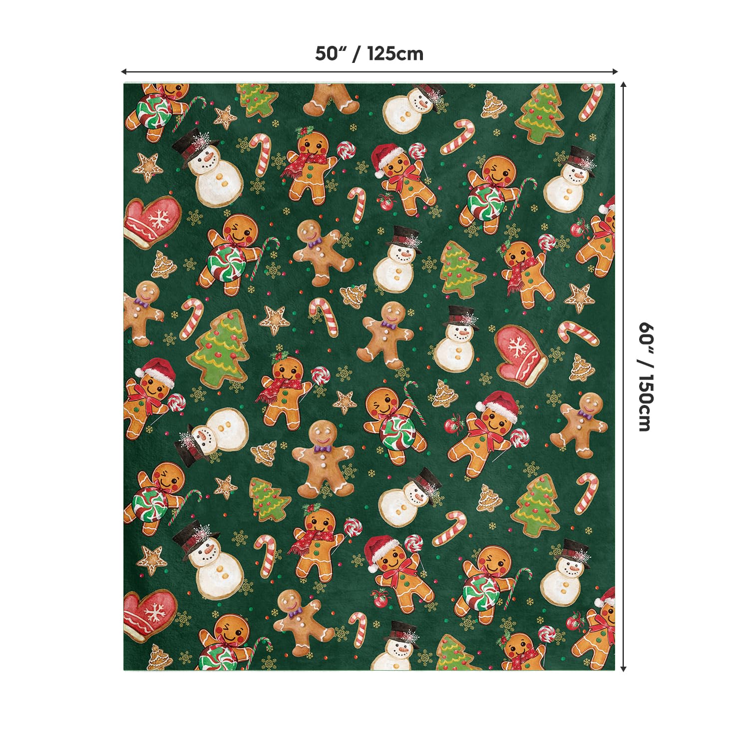 Christmas Flannel Blanket Throw, Green Gingerbread Man Christmas Bear Soft Fuzzy Plush Cozy Fleece Blankets