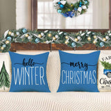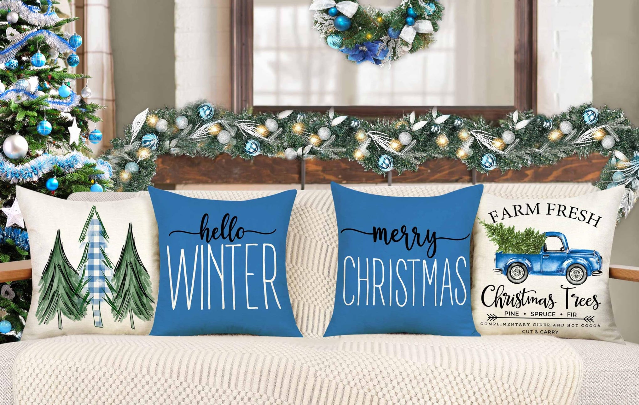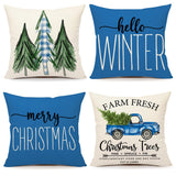 Blue Christmas Pillow Covers 18x18 Set of 4 Farmhouse Xmas Decorations Merry Christmas Tree Truck Hello Winter