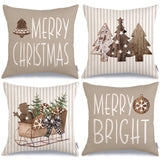 Christmas Pillow Covers 18 x 18 Inch Set of 4, Striped Wooden Tree Snow Sleigh Merry Bright Xmas Holiday Decor Decorative Throw Cushion Case Decoration for Home Party Sofa Couch (Brown)
