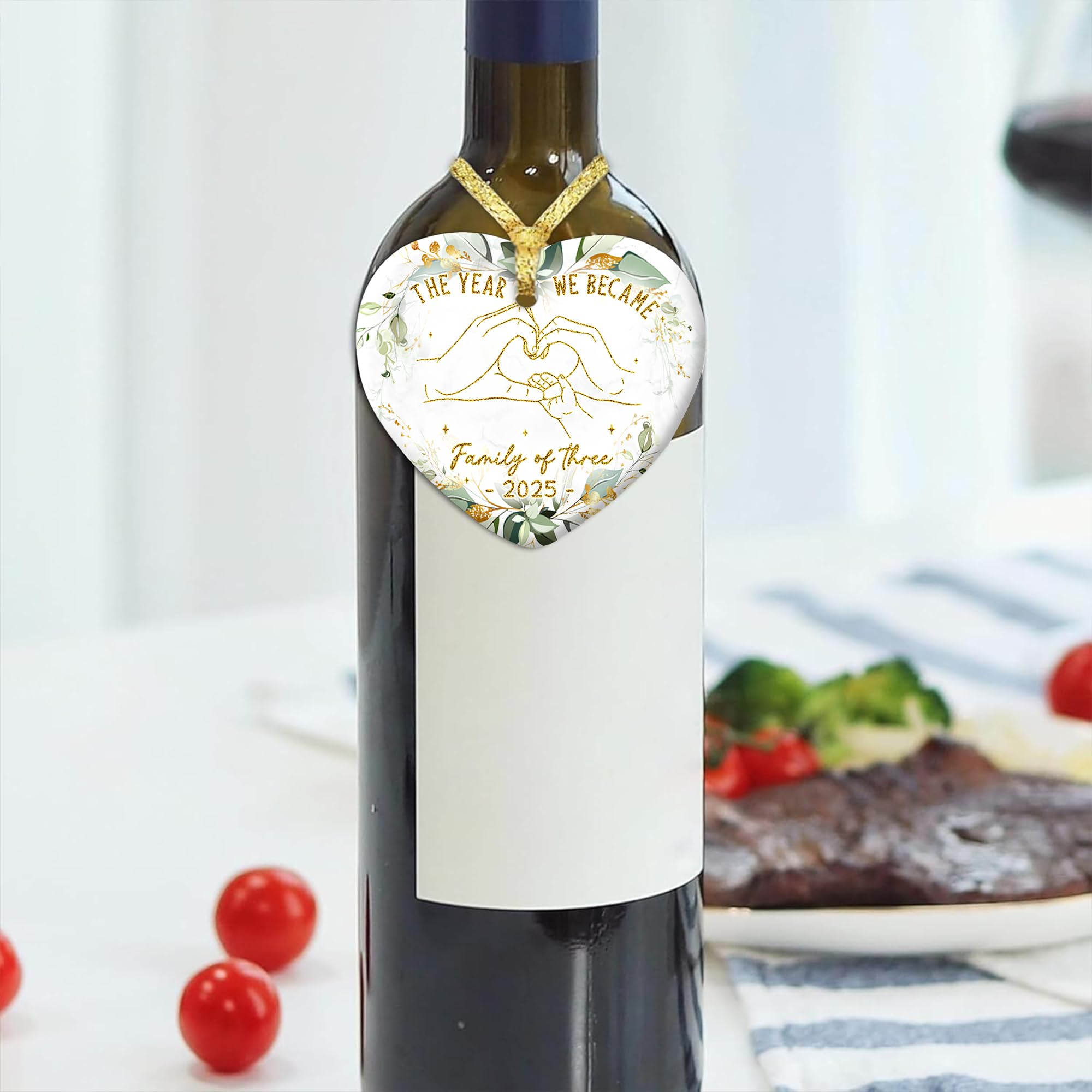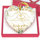 Baby First Christmas Ornament 2025 - The Year We Became Family of 3 - Baby Frist for New Parents - Newborn, 1st Xmas Tree Decoration - Heart-Shaped Ceramic Ornament