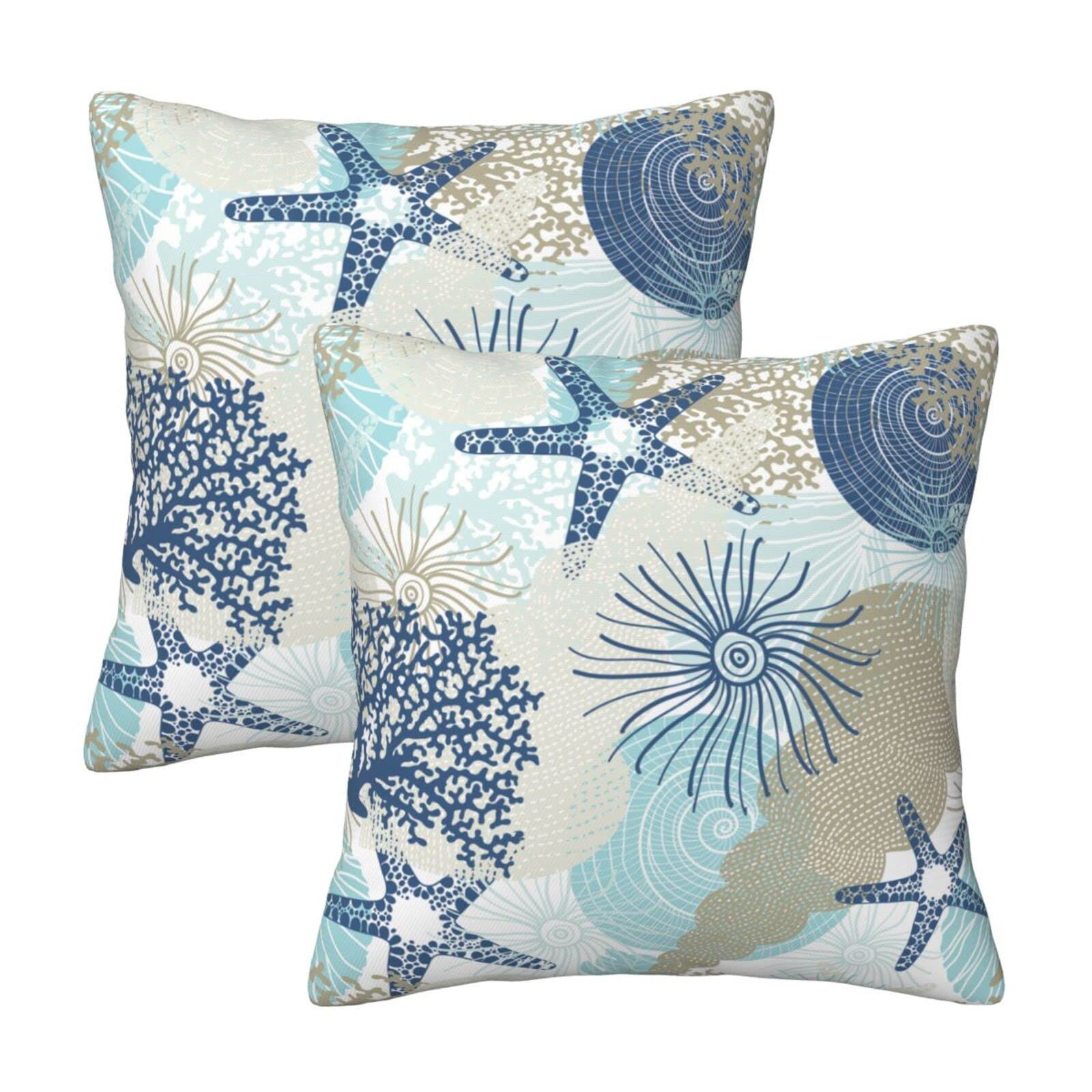 Beach Ocean Starfish Seashell Nautical Coastal Farmhouse Throw Pillow Covers 18x18