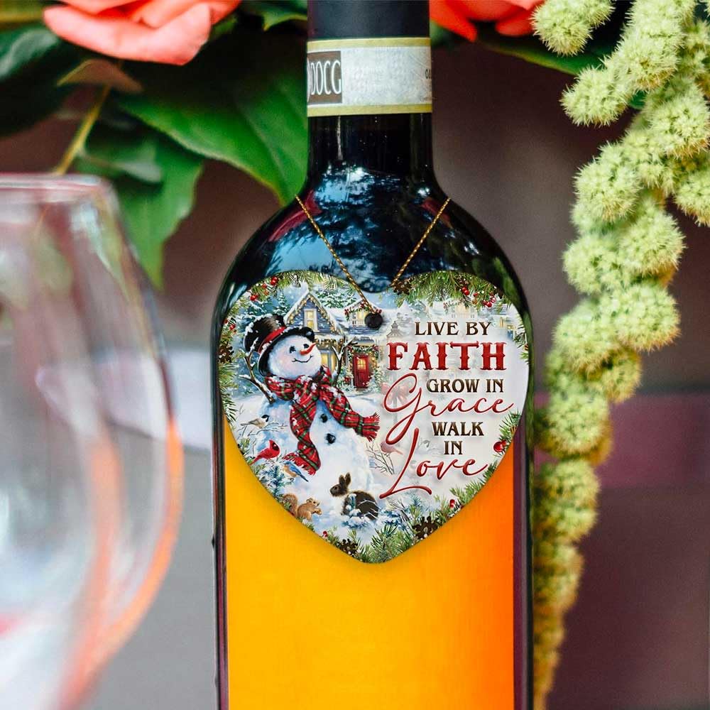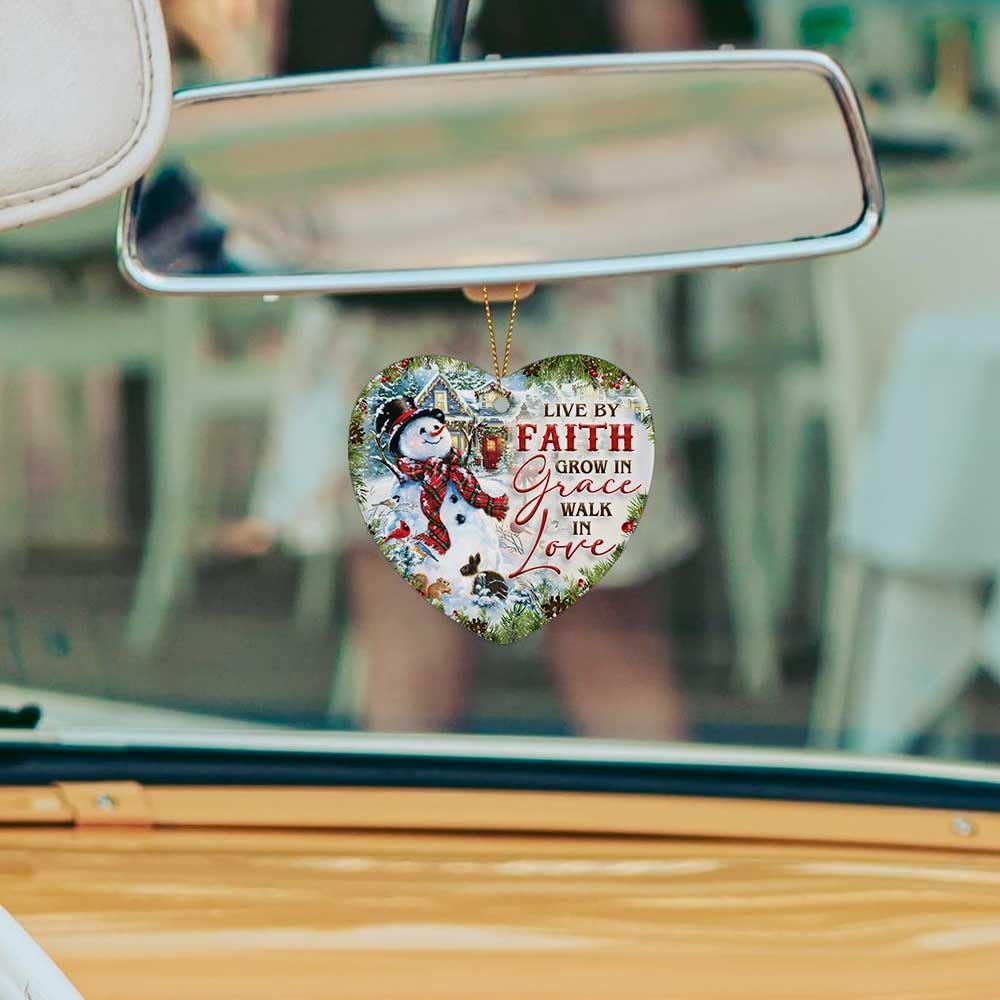 2025 Christmas Ornament - Inspirational Snowman Ceramic Ornament - Live by Faith, Grow in Grace, Walk in Love, Keepsake for Faithful Celebrations, for Family, Friends