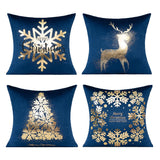Blue Christmas Gold Throw Pillow Covers Xmas Cases Decorations 18X18 Set of 4 Décor Indoor Home Soft Decorative Cushion for Sofa Couch Tree Snowflake Reindeer